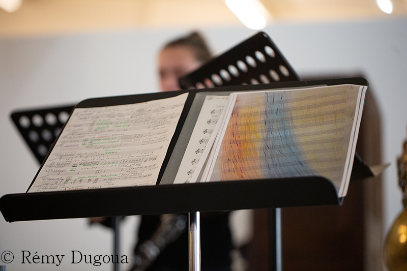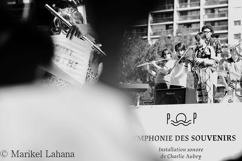 地元19区の老人ホームの住人たちは、小倉美英らの即興家による即興演奏にインスパイアされ、ひとりひとりの「思い出」の絵を描いた。今度はその絵を楽譜に見立て、19区音楽院の即興アトリエの生徒たちが即興演奏したものを録音、何層にも異なる解釈を織り込んだ「老人たちの記憶」をミックスした音を、オブリーの美術作品と一緒に展示する「記憶の交響曲」は、異世代や異分野、プロ/アマといった壁を超えて地域のエネルギーを集結させる、総合アートプロジェクトである。