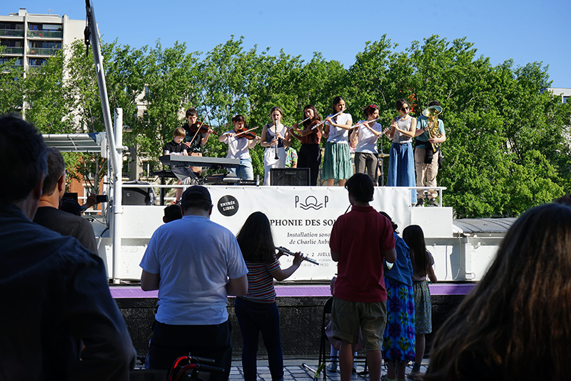 初日には「即興アトリエ」を率いて船上オープニングコンサートを行い、「ル・モンド」紙上で「パリ白夜に訪れたい10のイヴェント」に、同日行われた108のアートイヴェントの中から選ばれ、パリ市民の注目を浴びた。アクリル板、ネオンに小さな多数のスピーカーを用いた幻想的なインスタレーションは、ラ・ポップ船内で1カ月間展示された。
